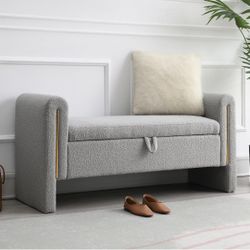 52" Storage Ottoman Bench, Teddy Upholstered Storage Bench with Armrest, Entryway Bench with Pull-Ring, End of Bed Bench with Padded Cushion, Window B$120Staten Island, NY