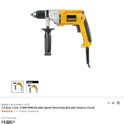 Drill DEWALT Reversing Drill Corded with Keyless Chuck, 7.8 Amp, 1/2-Inch DW246$110Valley Stream, NY