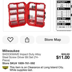 Milwaukee Steel Screw Driver Bit Set $30Queens, NY