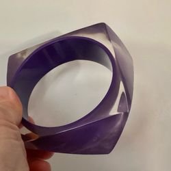 Purple Acrylic Bangle Multifaceted Surface Cuff Chunky Bracelet 1980s Jewelry $10Garden City P, NY
