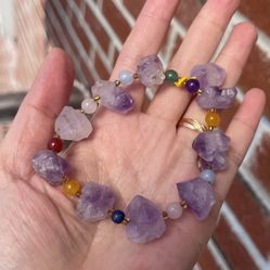 6.5 inch dainty women’s natural rough amethyst crystal beads bracelet for women$39Queens, NY
