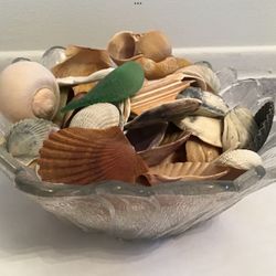 Decorative Scalloped Glass Bowl + Seashells Beach Glass$5Garden City P, NY
