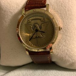 This is a vintage American Eagle coin watch featuring the "E Pluribus Unum" inscription and an eagle emblem on the dial. It has a gold$55Elizabeth, NJ