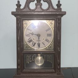 Wood clock - 15 days mechanical movement key wind with brass plated dial$20Mount Vernon, NY