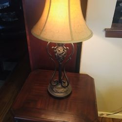Antique Lamp With Material Shade/Cherry Wood Table$50Staten Island, NY