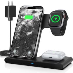 3-in-1 Wireless Travel Station Charging : Charger Stand Multiple Devices Compatible for iPhone 16e 16 15 14 Pro Max 13 12 11 for Apple Watch 10 9 8 7 $10Queens, NY