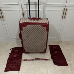 Vintage Ralph Lauren Monogram Rolling Luggage Suitcase Red Toiletry & Shoe Bags$100Great Neck, NY