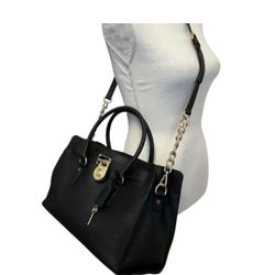 Michael Kors Large Hamilton Black/Gold Tote Bag Saffiano Leather Chain Strap$160Hicksville, NY