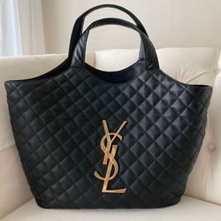 Black leather quilted tote bag with additional pouch$60New York, NY