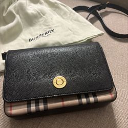 BURBERRY Grainy Calfskin Vintage Check Hampshire Crossbody Black$500New York, NY