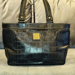 DOONEY & BOURKE 1975 CROC TOTE / SHOULDER BAG CROCODILE EMBOSSED BLACK LEATHER WITH RED INTERIOR$100Garden City P, NY