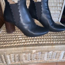 Chloe Lauren Scalloped Black Ankle Leather Chelsea Bootie EUR SZ 40. US 9- 9.5$399Woodmere, NY