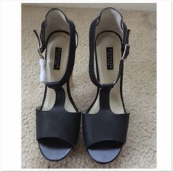NEW - black sandals w heel strap, size 8, $15$15New York, NY