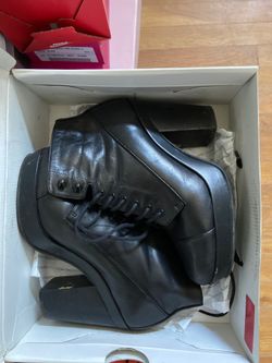 Black Leather GIDIGIO ITALY Back Lace Heels Ankle Boots 38.5. Condition is Pre-owned. See pictures ask questions and make an offer!$50Queens, NY