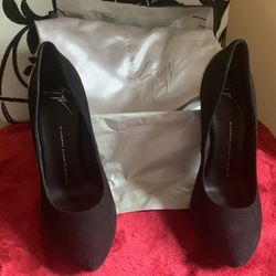 Giuseppe Zanotti Gold Heel Black Suede Pumps$300Floral Park, NY