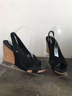 UGG BLACK SLINGBACK OPEN TOE SUEDE WEDGES CORK HEELS 10 M. Condition is Pre-owned. See pictures ask questions and make an offer!$75Queens, NY