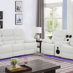 NEW FAUX LEATHER RECLINER SOFA AND LOVESEAT WITH LED LIGHTS AND BLUETOOTH! AVAILABLE IN BLACK AND WHITE $1,299Clifton, NJ