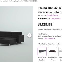 Rosina 118” Wide Faux Leather Reversible Sofa & Chaise$300Queens, NY