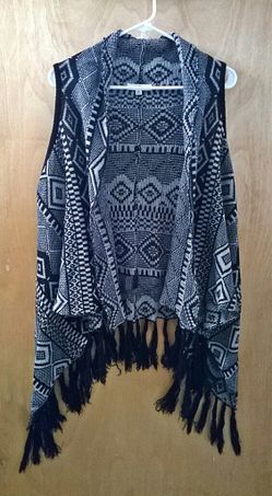 Ethnic Geometric Pattern Vest With Tassels, Size M$10Brooklyn, NY