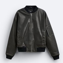 Zara Faux Leather Jacket Bomber Taupe Oversized Sz M$85New York, NY