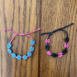 Kids Beaded Flower Bracelets Floral Bead 2 Pack Adjustable Blue Black Pink$2Greystone Park, NJ