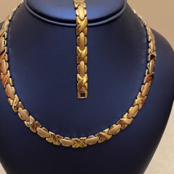 New ladies XOXO jewelry set bracelet and necklace. Gold tone color. Stainless steel. Bracelet measure at 7” Necklace measure at 18 “ long. Great with $85Brooklyn, NY