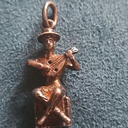 Silver Man Sitting On Box Playing Mandolin / Guitar Charm Pendant Vintage$32New York, NY