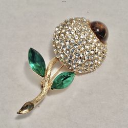 Vtg. Rhinestone Gold Tone Metal Flower Brooch Costume Jewelry Pin $10Garden City P, NY