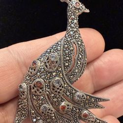3โ VTG 925 Sterling Silver Red Blue Gemstones Marcasite Peacock Pendant Brooch$95Oceanside, NY