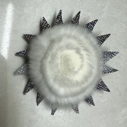 White Rex Rabbit Fur Flower Pin Metallic Background $20Queens, NY