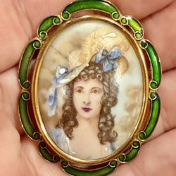 ANTIQUE 60s THOMAS MOTT BRASS EMERALD ENAMELED VICTORIAN LADY BROOCH PENDANT $29Oceanside, NY