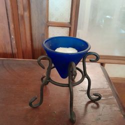Blue Glass Tealight Candle Holder with Iron Stand: Pier One$5Jersey City, NJ