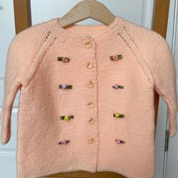 HANDMADE KNIT SALMON TODDLER CARDIGAN FRONT BUTTONS 4T$27Elmwood Park, NJ