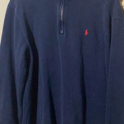 *AUTHENTIC* (XL SHRUNKEN TO FIT M-L) Polo Ralph Lauren Blue-Red Half Zip Cardigan Mens$60Baldwin, NY