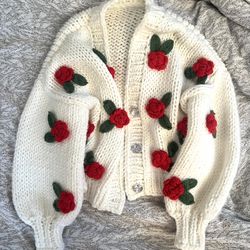 NWOT Chunky Oversized Hand Knitted Cardigan with Roses$90New York, New York