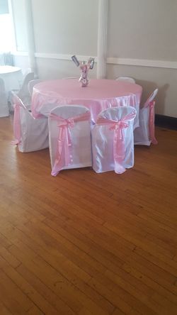 Folding shair covers 99 and round table clothes 10 each$0Paterson, NJ