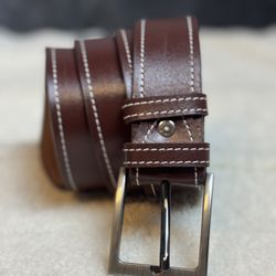 Genuine Brown Leather Belt White Stitching Classic Buckle Men’s US Size L$20The Bronx, NY