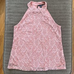 Cable & Gauge Womens M Sleeveless Pink Floral Lace Halter Top Blouse$11Greystone Park, NJ