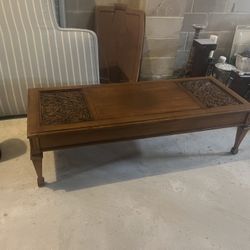 Elegant Carved Wood Coffee Table with Marble Top$100Clark, NJ
