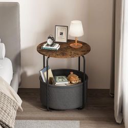 Round Side Table, Small Round End Table with Fabric Basket, Bedside Table with Black Metal Frame, Small Coffee Table, Farmhouse Sofa Side Table for Li$19Brooklyn, NY