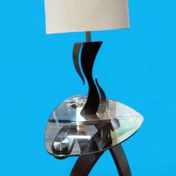 Raymour & Flanigan Allure Pie Shaped Glass Coffee Table & Anthony Lamp$200New York, NY