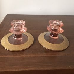 Cambridge Glass Pink Gold Gilt Candlestick Pair Depression Glass$26Mahwah, NJ