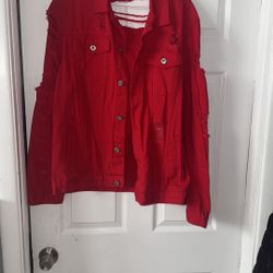Red Ripped Denim Jacket $10North Plainfield, NJ
