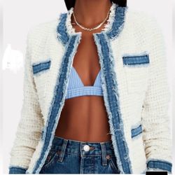 Nanette Lepore White Luxury Tweed Denim Trim Jacket Blazer size M$140The Bronx, NY