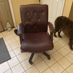 Brown Leather Rolling Desk Chair With Nailhead Trim $75E Atlantc Bch, NY