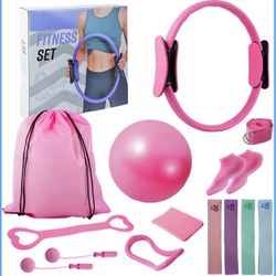 New-Pilates Kit for Women, 13-in-1 with 12.9" Ring, 9.8" Mini Ball, 4 Fabric Loop Bands, Figure-8, Stretch Straps, Cordless Jump Rope, Yoga Socks & Ca$30Queens, NY