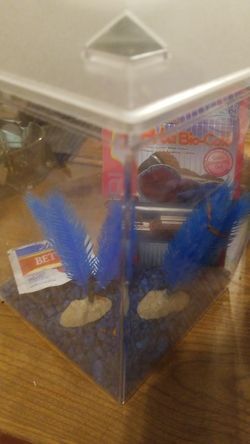 small fish tank blue with fish food$25Bronx, NY