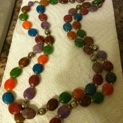 Long Colorful Lightweight Flat Beaded Necklace w/Gold Tone Beads$20Hicksville, NY