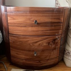 Nightstand: Traditional Black Wood 2‑Drawer Nightstand with Silver Metal Hardware$100New York, NY