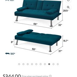 Renwick Convertible Futon Sofa Bed W/ Chrome Metal Legs & 2 Cup Holders, Aqua Blue. $250South Hempstead, NY